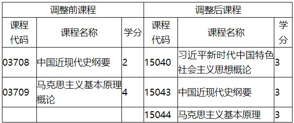 (二)原本科层次专业的2门思想政治理论课调整设置为3门。如表所示