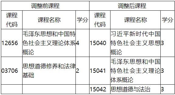 (一)已通过的思想政治理论课程可对应顶替调整后的思想政治理论课程。对应顶替关系如表所示