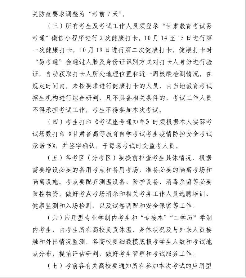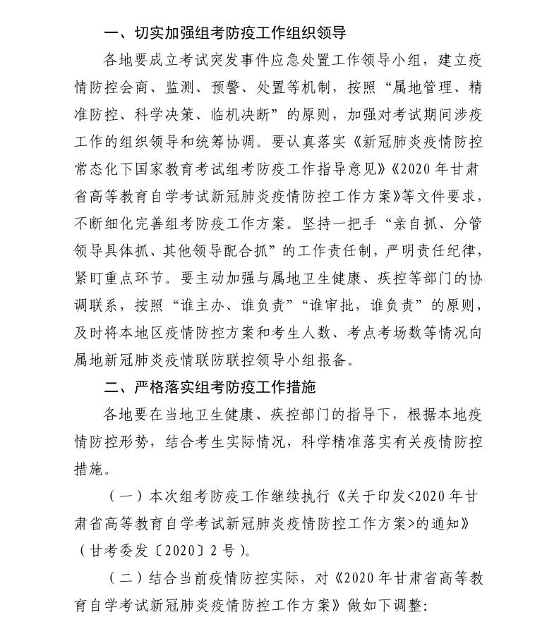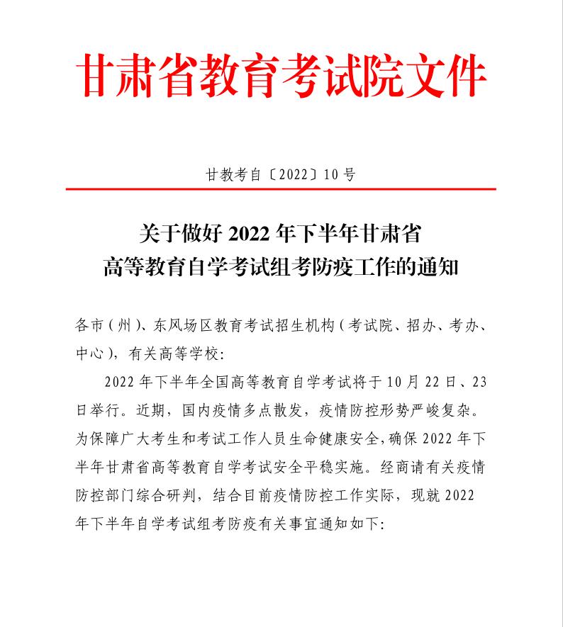 关于做好2022年下半年甘肃省高等教育自学考试组考防疫工作的通知