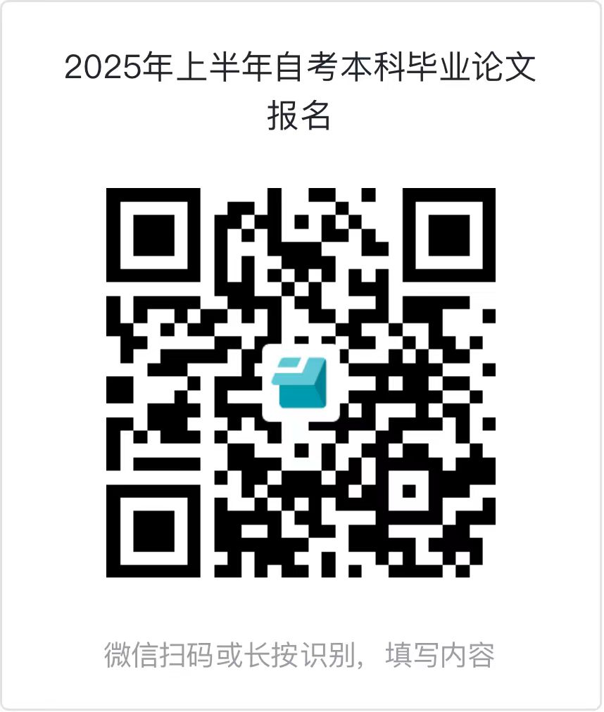 请需要报考毕业论文的考生扫描以下二维码登记报名信息,务必如实准确填写报名相关信息,因谎填、漏填、错填等导致报名信息与实际信息不一致的,将取消本次报名资格。报名审核通过结果将另外通知。