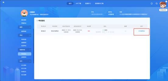 点击【打印准考证】,务必在打印准考证的规定时间内进行准考证打印工作。