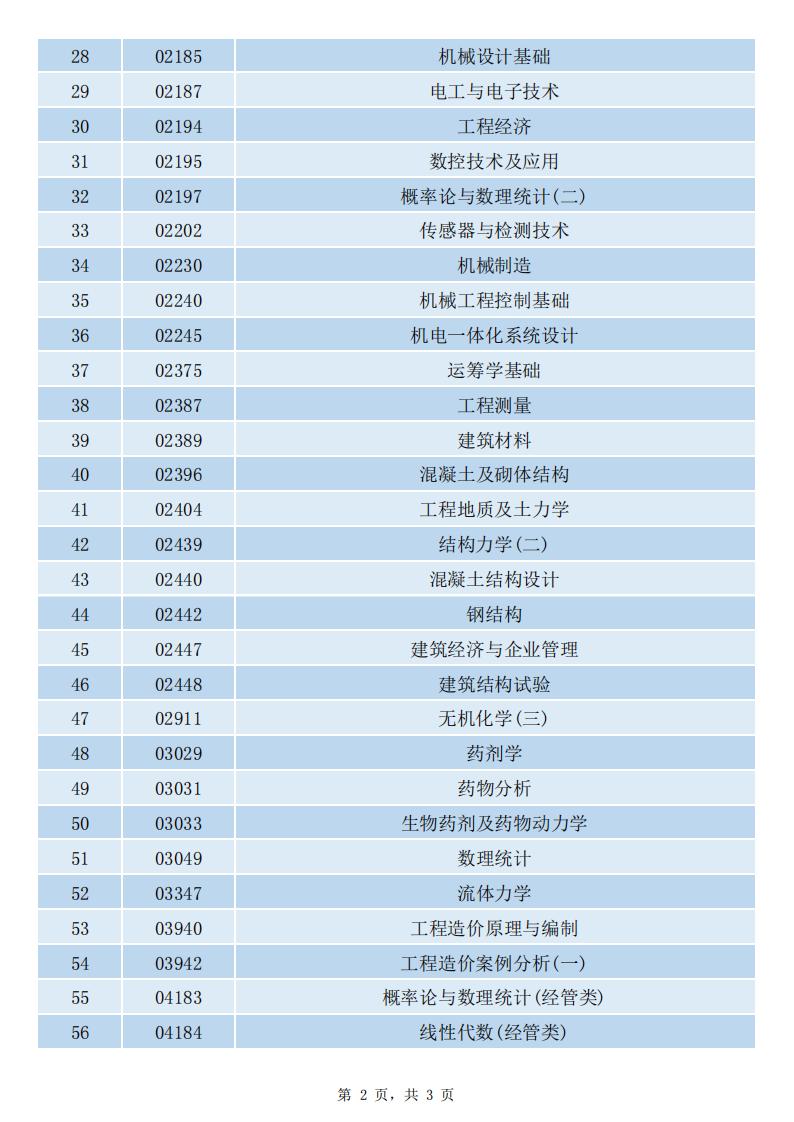 贵州省高等教育自学考试可携带不带存储功能计算器课程一览表