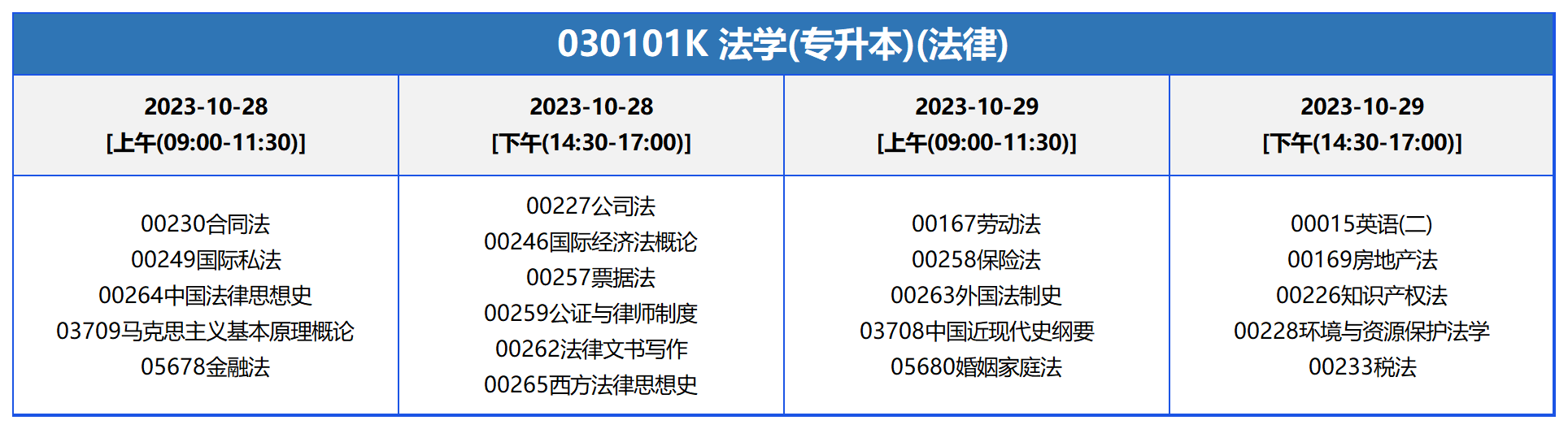 10月考期法学本科21科笔试均有安排考试,具体考试安排如下: