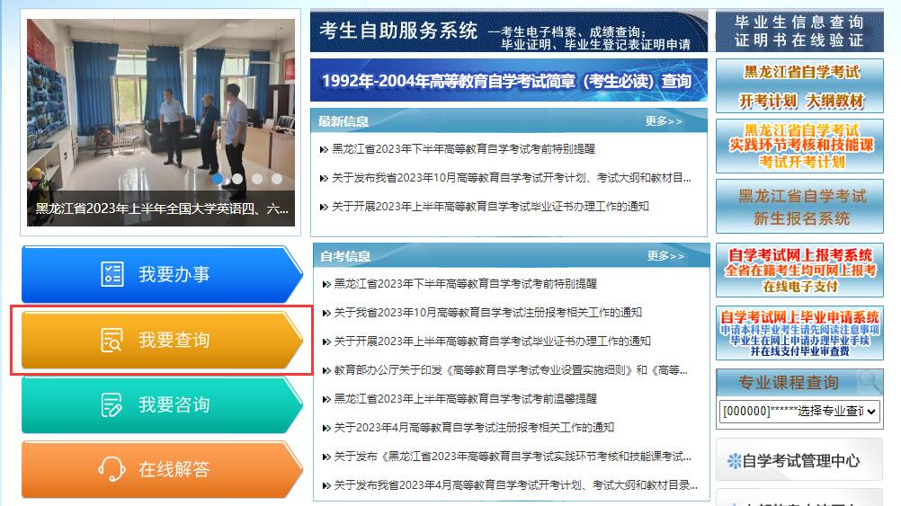 3、成绩查询入口开通后方可查询10月考期黑龙江自考成绩,开通之前只能查询到往年已考成绩。已考成绩也可以在首页点击“我要查询”-“更多查询”进入。