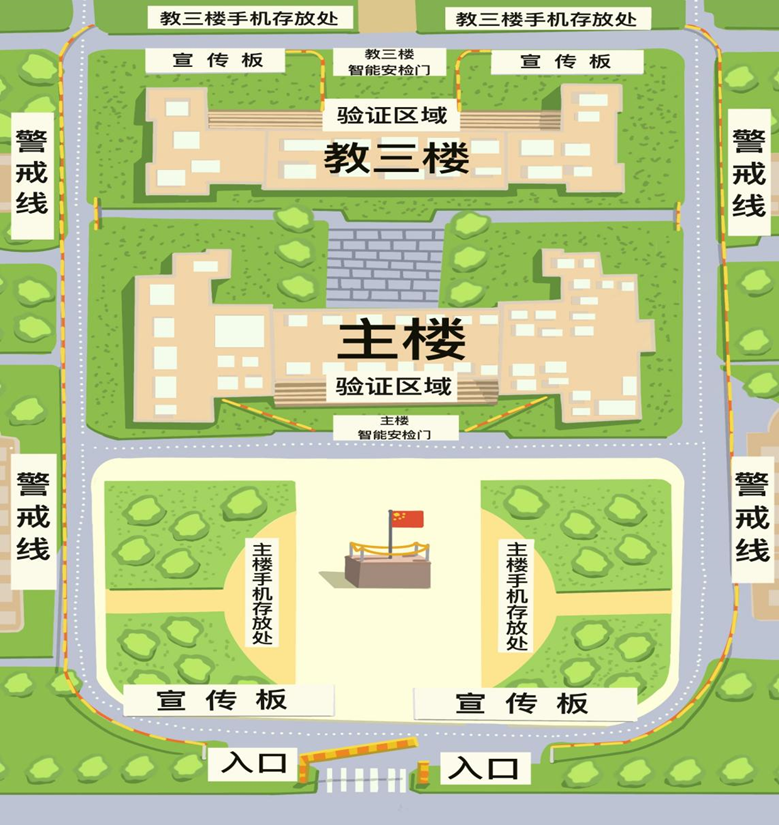 注:学校附近道路狭窄,交通非常拥堵,请考生至少提前1个半小时到达考点,并合理安排出行方式;