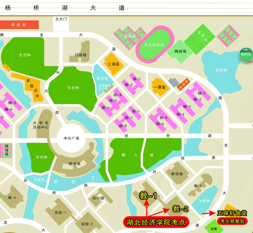 考点地址:湖北省武汉市江夏经济开发区中州大道98号武昌职业学院(考场入口位于教学楼正门)。