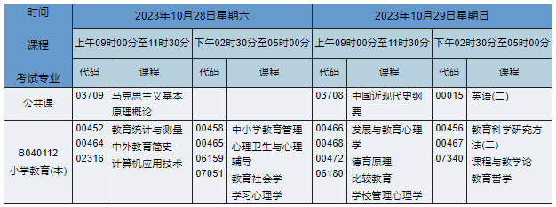 首页 > 考试安排> 湖南考试安排 > 2023年10月湖南自考本科小学教育专业课程安