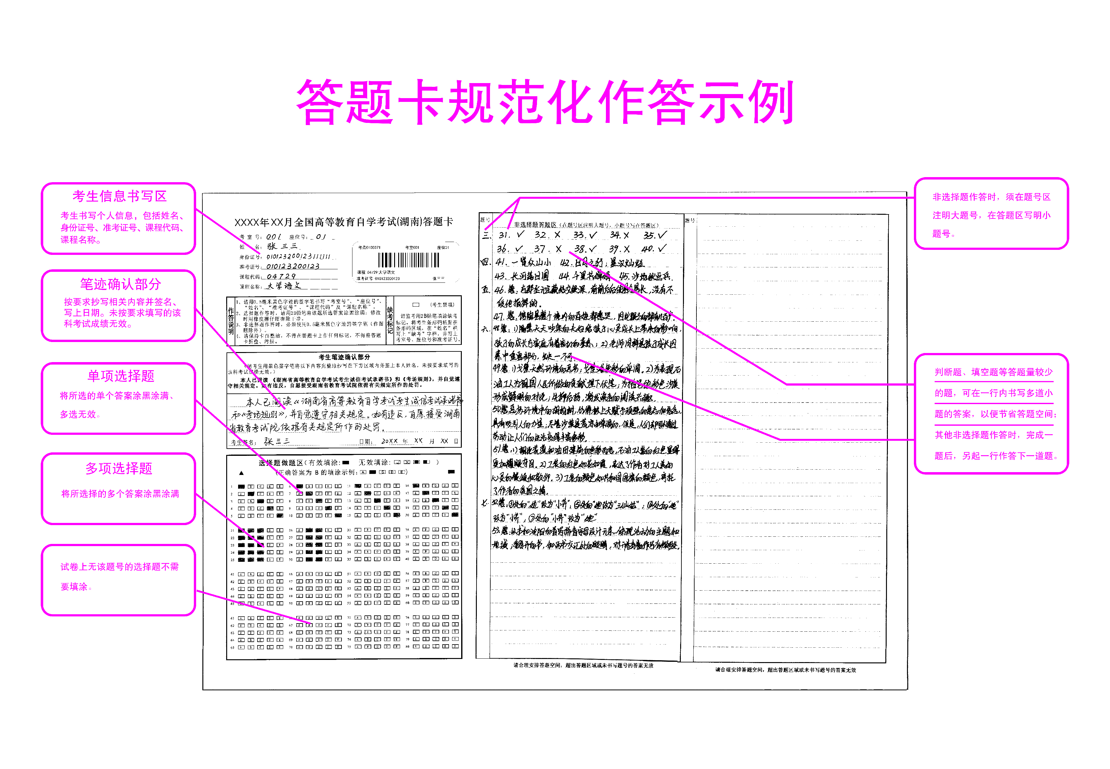 2025年4月湖南省高等教育自学考试答题卡规范参考模板
