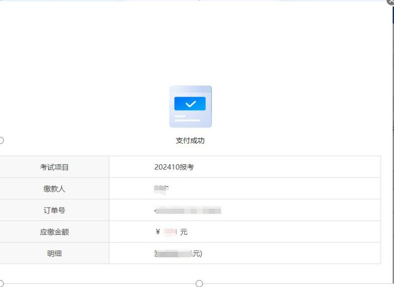 第六步报考确认。考生完成上述操作后,点击支付界面右上角“X”关闭按钮。关闭支付界面后,可返回报考系统查看本次缴费成功的报考课程信息(缴费状态为“已缴费”),如下图所示: