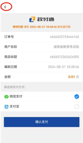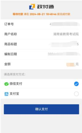 考生应认真阅读完确认提交提示信息,再点击“确定”按钮,系统会弹出支付界面弹窗,如下图所示: