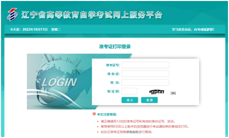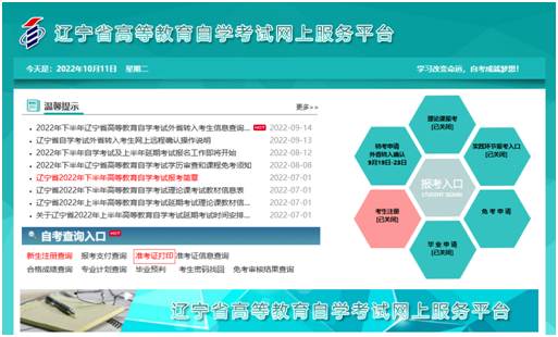 2022年下半年辽宁自考及上半年延期考试准考证打印温馨提示