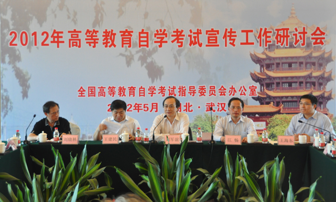5月19日,由全国高等教育自学考试指导委员会办公室主办的2012年高等教育自学考试宣传工作研讨会在湖北武汉召开。教育部考试中心党委书记刘军谊出席会议并讲话,湖北省教育厅副厅长徐雁冰出席会议并致辞。教育部考试中心自考综合处、助学管理处处长王建民,自考综合处副处长王海东、助学管理处副处长沈漪、考务管理与监察处副处长时雨,湖北教育考试院党委书记、院长江畅,纪委书记刘晓林等参加会议。来自17个省、自治区、直辖市自考办的40余位代表和《中国教育报》、“中国教育在线”的代表与会。会议由王海东同志主持。
