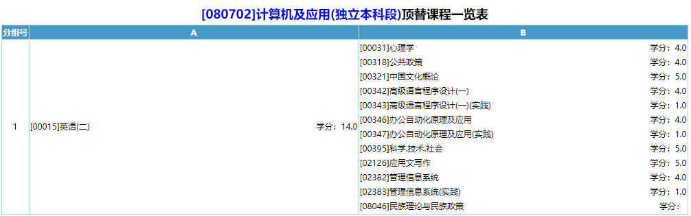 专业名称:计算机及应用-独立本科段