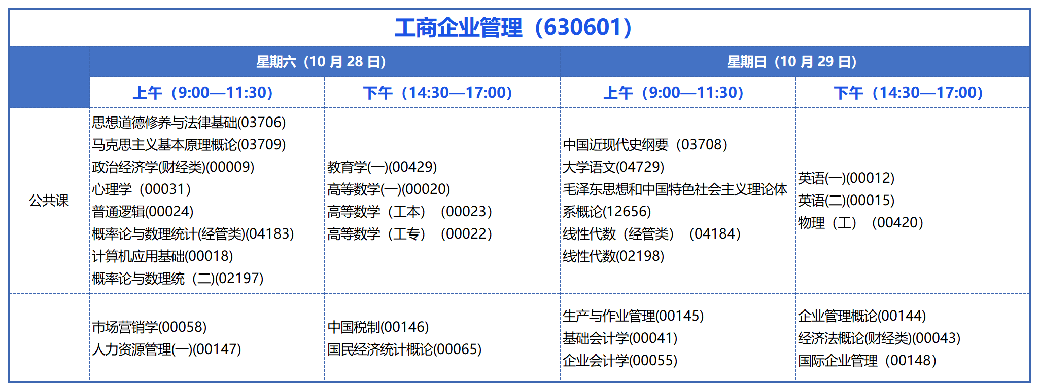 将考试安排和专业计划一核对,我们发现,6科公共课,10科专业课均有在10月考期安排考试。按照这个情况来说,后续青海自考也会正常安排工商企业管理专科的考试,一般不会存在想报考的科目不能参加考试,最终影响考生毕业的情况,考生大可以放心报考。