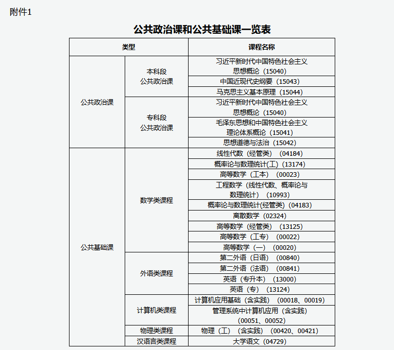 第二条 高等教育自学考试课程分为理论课(公共政治课、公共基础课、专业课)和实践性考核课程,公共政治课和公共基础课具体见附件1。