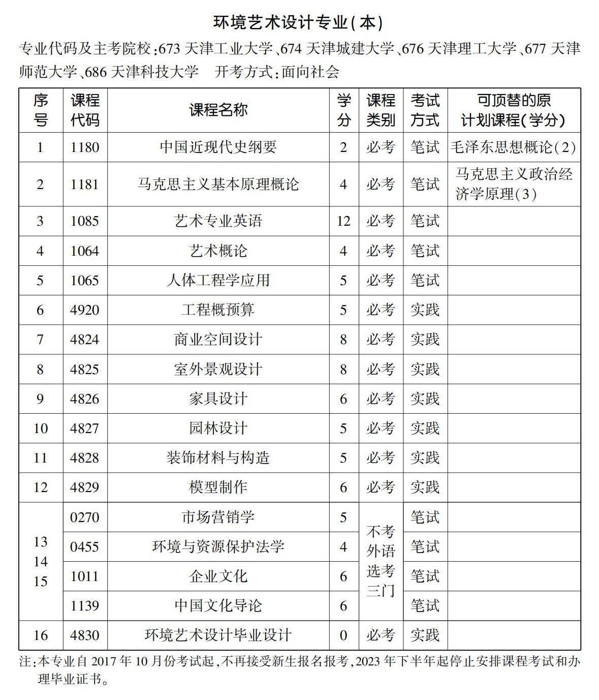 2022年10月天津自考本科环境艺术设计专业计划(停考过渡)