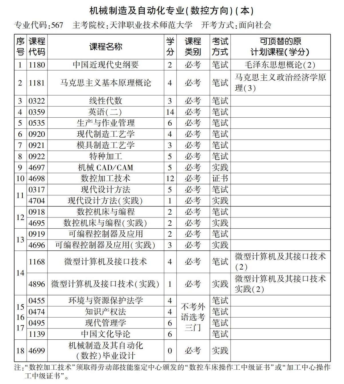 2023年10月天津自考本科机械制造及自动化(数控方向)专业计划