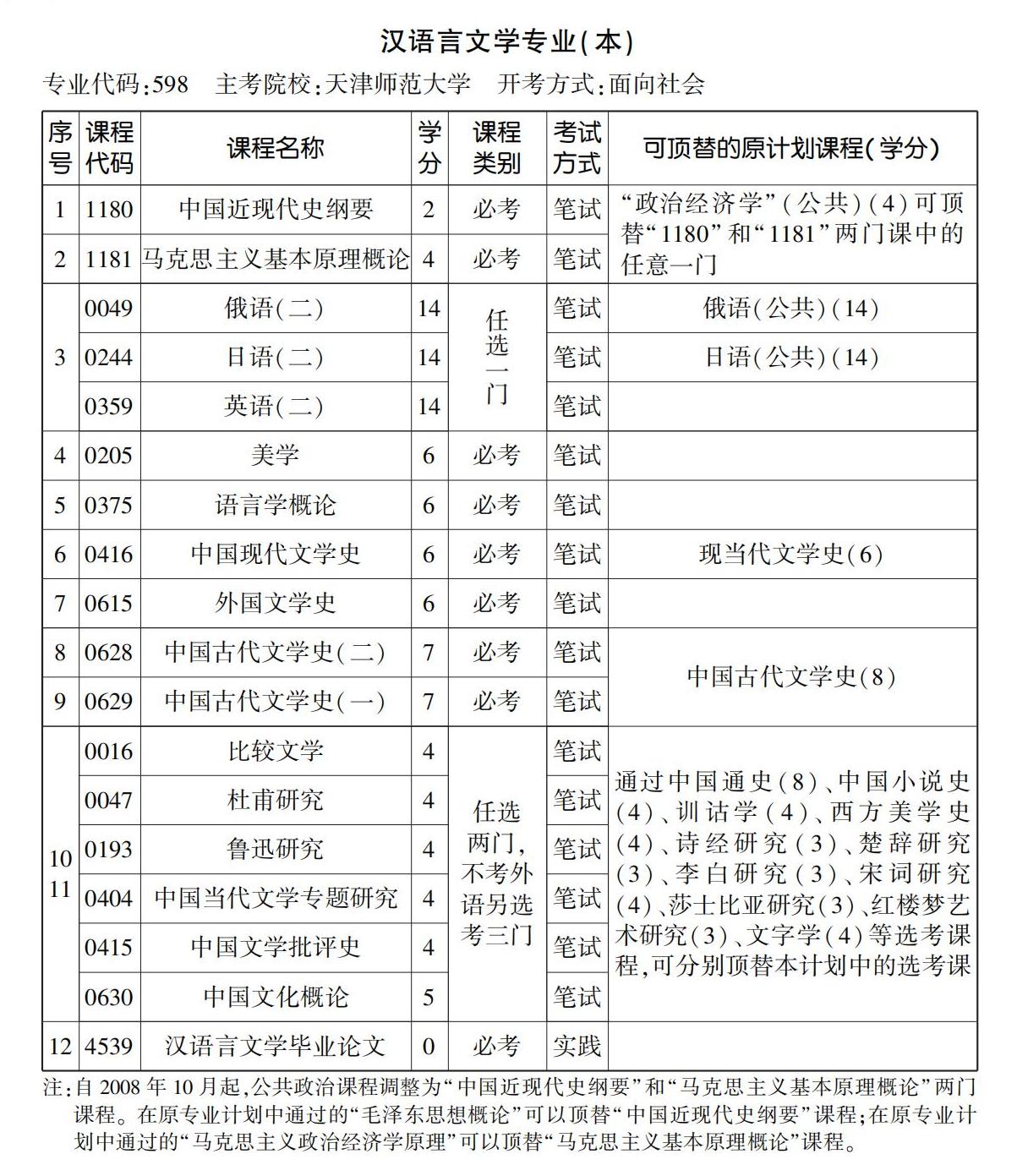 2023年10月天津自考本科汉语言文学专业计划