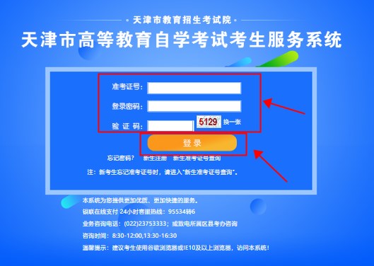 4、输入准考证号、登录密码及验证码,登录考生服务系统;