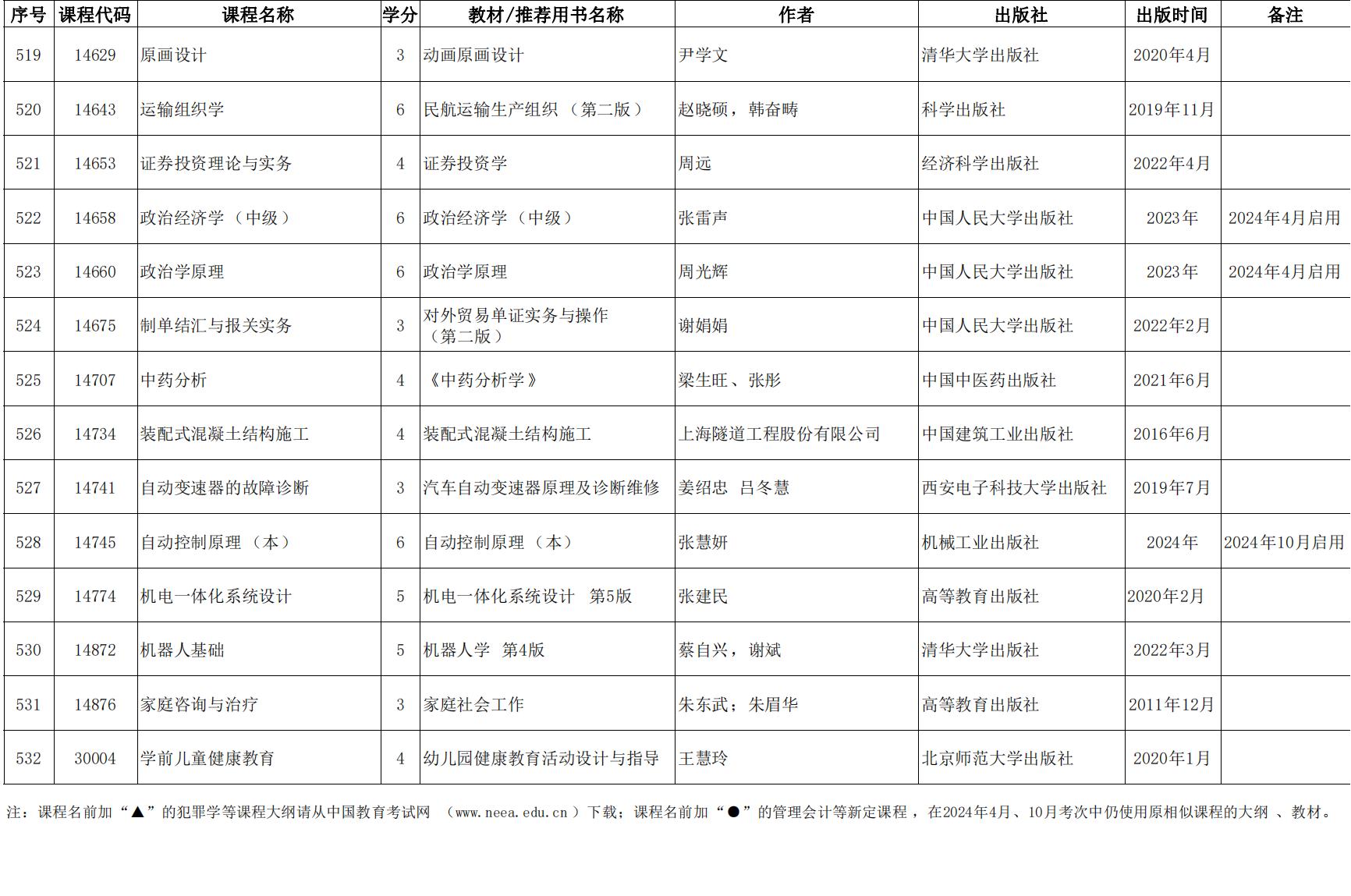 2024年天津市高等教育自学考试课程考试时间安排及课程使用教材发布通知_44